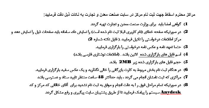 مراکز محترم راهنمای ثبت نام مراکز در سایت جدید وزارت صنعت و معدن و تجارت ، ارسال گردید.